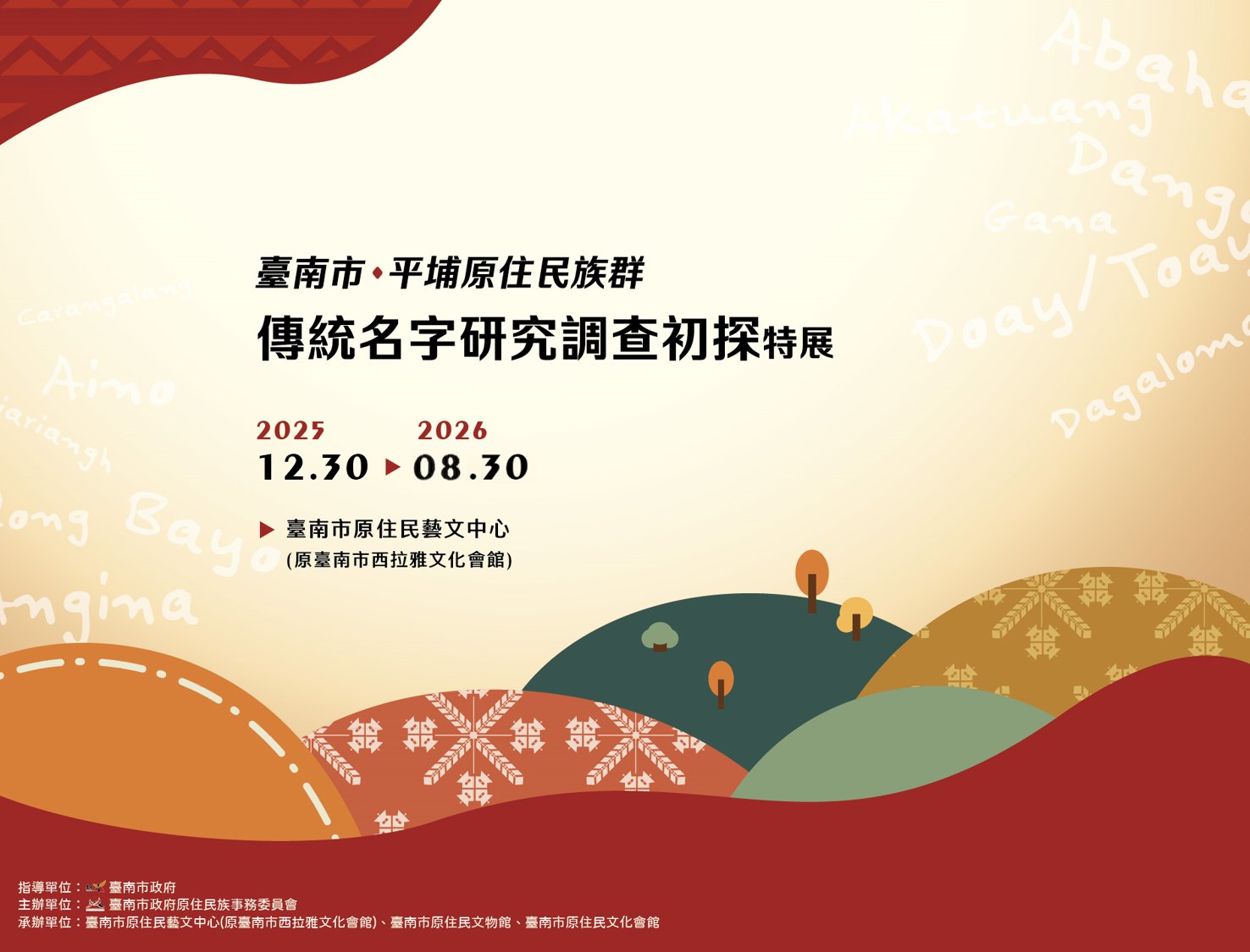 【轉知】臺南市原住民藝文中心辦理「臺南市平埔原住民族群傳統名字研究調查初探特展」,請踴躍觀展!